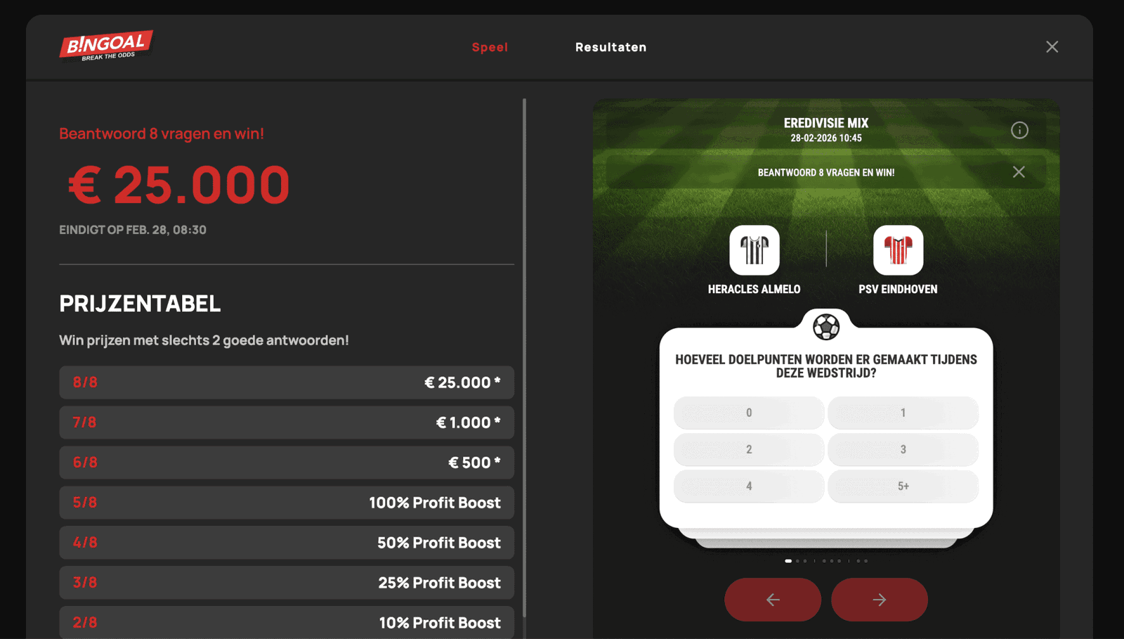 - Geldige spellen: Bingoal Squiz (vragen/kaarten per aankomend evenement, zoals o.a. voetbal en andere sportwedstrijden)